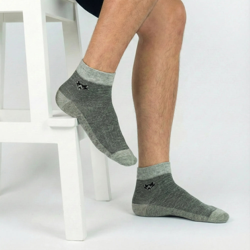 Streamline your morning routine with our Men's Daily Essential Ankle Socks. Built for reliability and versatile style, these socks are the ultimate everyday staple. Featuring a clean, solid-color design with a subtle geometric wolf logo on the ankle, they bridge the gap between casual comfort and office-appropriate style. Whether you are running errands or sitting in a meeting, the soft knit fabric and secure fit provide the all-day comfort you need.